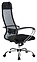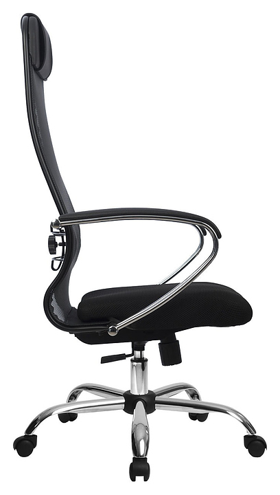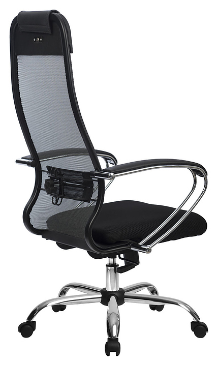 Кресло Метта Комплект 18 предназначено для долгой работы за компьютером на даче, дома, а также в офисах. Модель оснащена высокой замкнутой сверху спинкой с мягким накладным подголовником и мягким комфортным натяжным сиденьем. Сверхпрочный каркас кресла и регулируемый поясничный подпор изготовлены из стали с износостойким полимерным покрытием черного цвета, обивка - из износостойкой обивочной сетчатой ткани. Пятилучье в комплект поставки не входит и приобретается отдельно. Особенности: