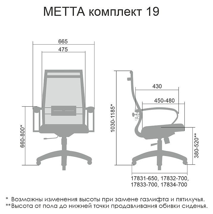Кресло Метта Комплект 19 предназначено для долгой работы за компьютером на даче, дома, а также в офисах. Модель оснащена низкой спинкой и сиденьем совершенной эргономичной формы. Сверхпрочный каркас кресла и регулируемый поясничный подпор изготовлены из стали с полимерным покрытием черного цвета, обивка - из износостойкой обивочной сетчатой ткани. Пятилучье в комплект поставки не входит и приобретается отдельно. Особенности: