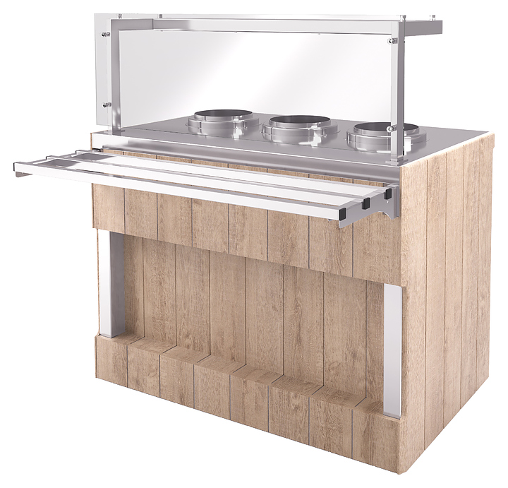 Мармит Refettorio Capital RM13DS используется в составе линии раздачи Capital на предприятиях общественного питания и торговли для поддержания в горячем состоянии и последующей раздачи первых блюд. Модель оснащена 4 встроенными электросупницами. Столешница выполнена из кварцевого агломерата, фасад - из ламинированного МДФ. Особенности: