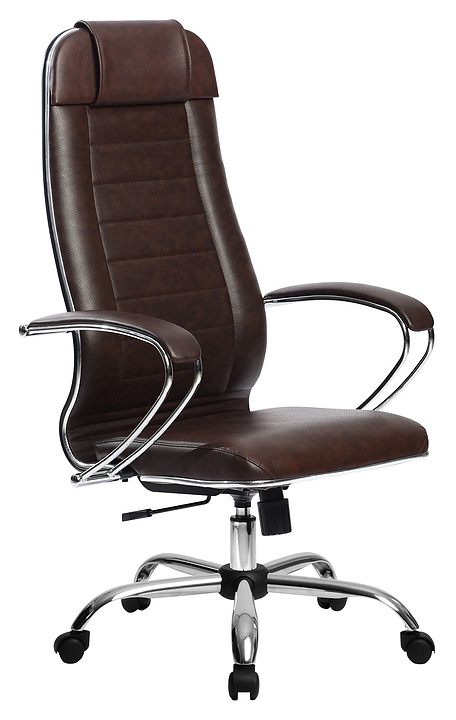 Кресло Метта Комплект 29 предназначено для долгой работы за компьютером на даче, дома, а также в офисах. Модель оснащена высокой спинкой с мягким подголовником и комфортным мягким сиденьем. Сверхпрочный каркас кресла и регулируемый поясничный подпор изготовлены из хромированной стали с полимерным покрытием черного цвета, обивка - износостойкого перфорированного материала NewLeather с прошивкой "Pilot". Пятилучье в комплект поставки не входит и приобретается отдельно. Особенности:
