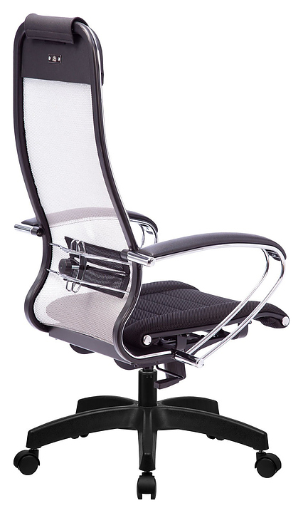 Кресло Метта Комплект 3 предназначено для долгой работы за компьютером на даче, дома, а также в офисах. Модель оснащена высокой замкнутой сверху спинкой с мягким накладным подголовником и мягким комфортным натяжным сиденьем. Сверхпрочный каркас кресла и регулируемый поясничный подпор изготовлены из хромированной стали, обивка спинки - из мягкой натяжной сетки, обивка сиденья - из износостойкой обивочной сетчатой ткани. Пятилучье в комплект поставки не входит и приобретается отдельно. Особенности: