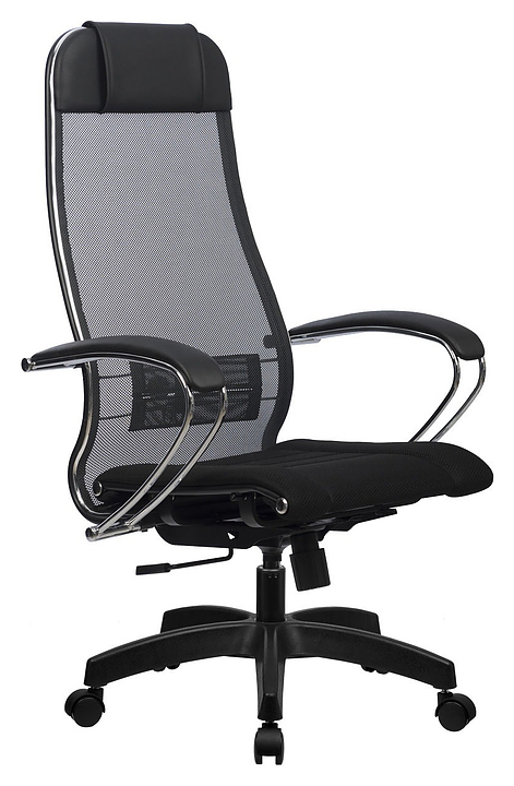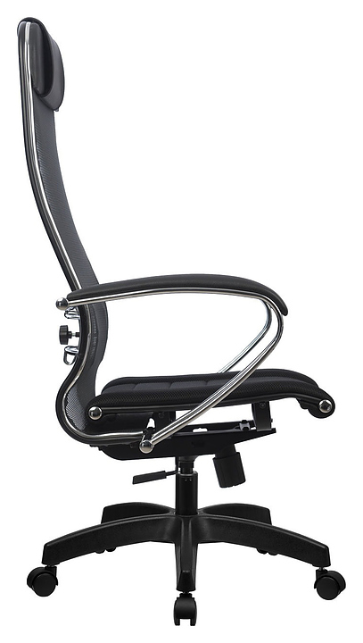 Кресло Метта Комплект 3 предназначено для долгой работы за компьютером на даче, дома, а также в офисах. Модель оснащена высокой замкнутой сверху спинкой с мягким накладным подголовником и мягким комфортным натяжным сиденьем. Сверхпрочный каркас кресла и регулируемый поясничный подпор изготовлены из хромированной стали, обивка спинки - из мягкой натяжной сетки, обивка сиденья - из износостойкой обивочной сетчатой ткани. Пятилучье в комплект поставки не входит и приобретается отдельно. Особенности: