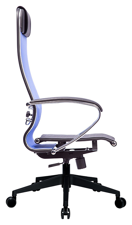 Кресло Метта Комплект 4 предназначено для долгой работы за компьютером на даче, дома, а также в офисах. Модель оснащена высокой замкнутой сверху спинкой с мягким накладным подголовником и мягким комфортным натяжным сиденьем. Сверхпрочный каркас кресла и 2D регулируемый поясничный подпор изготовлены из стали с износостойким полимерным покрытием черного цвета и хромированным молдингом, обивка - из сетчатой ткани. Пятилучье в комплект поставки не входит и приобретается отдельно. Особенности: