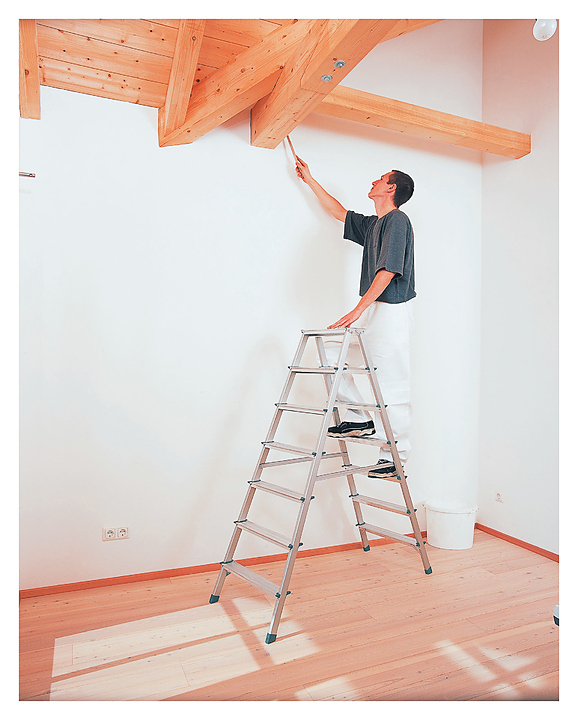 Стремянка ZARGES 44206 Scana B используется для выполнения строительных, ремонтных, отделочных или иных видов работ, когда необходимо произвести какие-либо действия на высоте. Модель оснащена клепанными рифлеными ступенями и прочными перлоновыми стяжными ремнями. Изделие выполнено из прессованного алюминиевого профиля с анодированным покрытием. Особенности:
