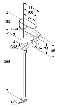 Высота излива 75 мм