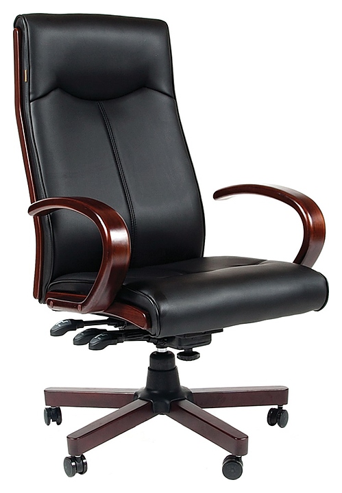 Офисное кресло Chairman 411 предназначено для комфортного размещения руководителя в офисах различных учреждений. Модель оснащена мягкими сиденьем и спинкой, изящными подлокотниками, устойчивым основанием с пятилучьем на колесах и рычагами регулировки. Обивка выполнена из качественной экокожи, пятилучье – из металла с деревянными накладками и пластиковыми элементами, подлокотники и вставки на боковинах – из натурального дерева с лакированным покрытием, колеса с полиуретановым покрытием, наполнитель – эластичный пенополиуретан. В комплект поставки входит инструкция по сборке. Особенности: