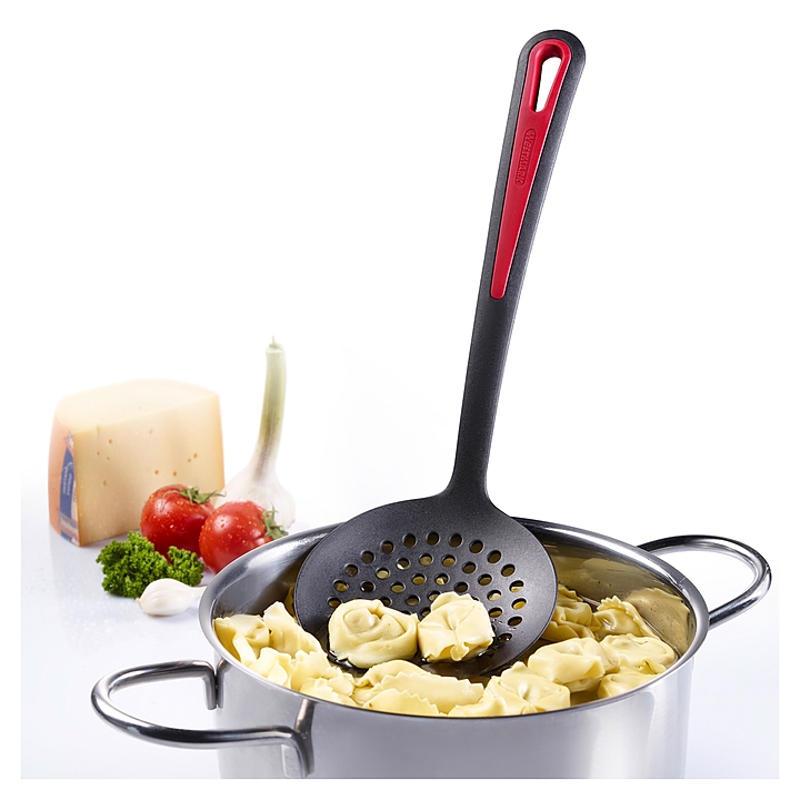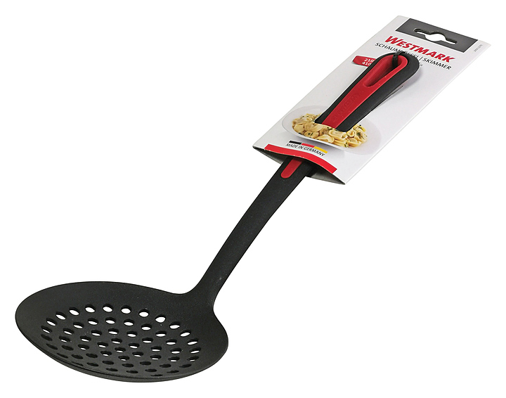 Шумовка Westmark 29502270 используется на предприятиях общественного питания и торговли, в частных домах и квартирах для съема пены и накипи с готовящихся блюд, а также извлечения приготовленных продуктов из кипятка, бульона, подливы и других жидкостей. Изделие имеет сплошное черпало из полиамида с крупной перфорацией и удобную длинную пластиковую ручку с отверстием на конце для удобного хранения. Особенности: