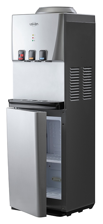 Кулер Vatten V46SKB предназначен для разлива, нагрева и охлаждения питьевой воды в домашних условиях, офисах, отелях и т.д. Модель оснащена 3 кранами, 3 кнопками и 3 LED-индикаторами. Благодаря лаконичным линиям и простым формам кулер впишется в интерьер любого дизайна. Бутылоприемник, верхняя и передняя панели выполнены из качественного, устойчивого к ультрафиолету пластика, боковые панели - из нержавеющей стали. Дополнительные характеристики: