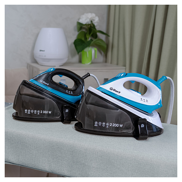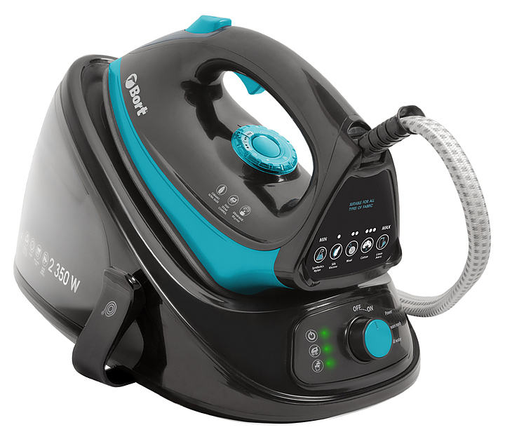 Парогенератор Bort SteamCare Plus предназначен для влажно-тепловой обработки постельного белья, скатертей, штор и одежды в частных домах и квартирах. Модель оснащена паровым утюгом с керамической подошвой и съемным резервуаром для воды. Особенности: