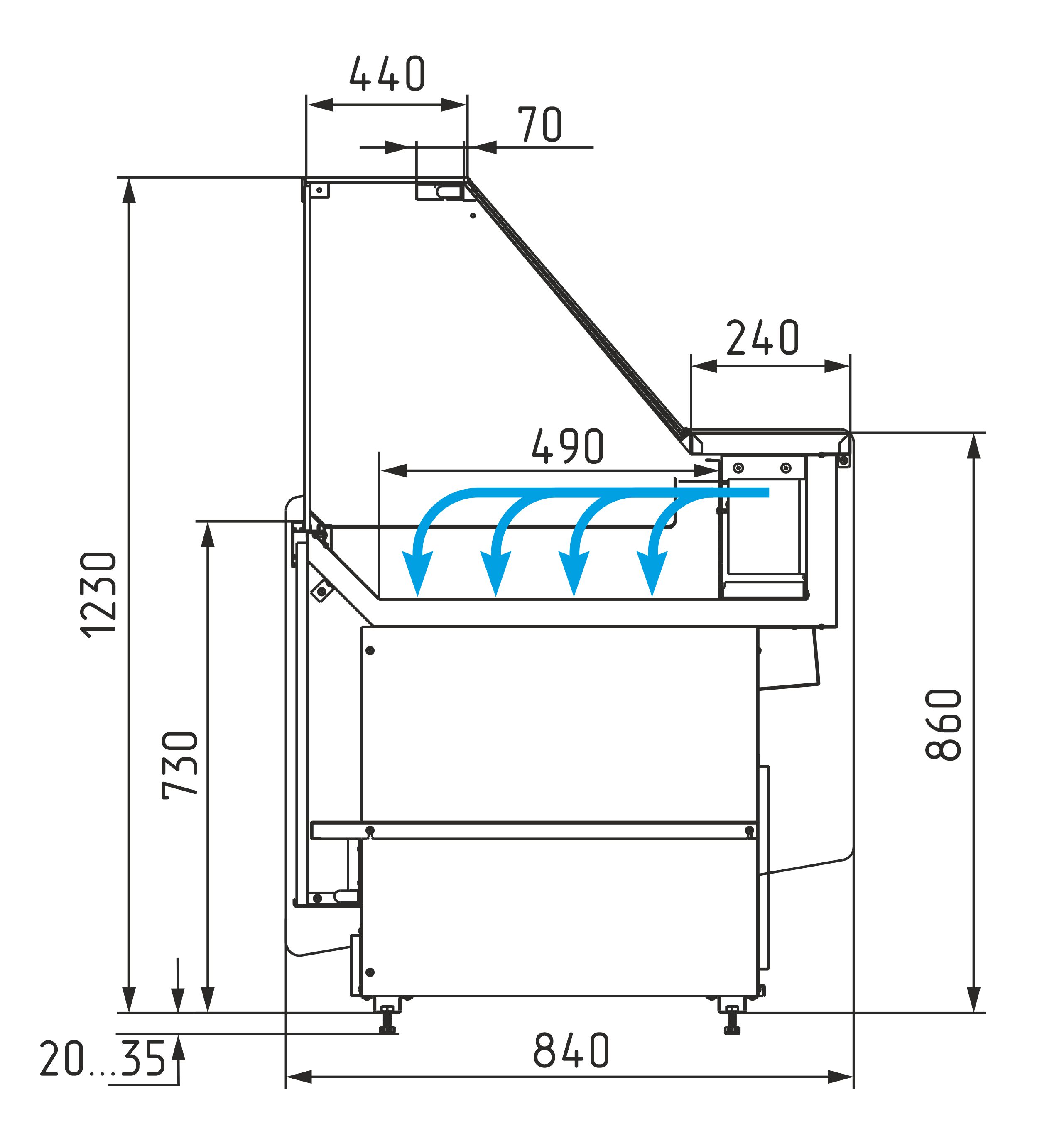 Холодильная кондитерская витрина Carboma КС80 SM 1,0-1 BORNEO 2 используется на предприятиях общественного питания и торговли для охлаждения, кратковременного хранения, демонстрации и продажи тортов, пирожных и других кондитерских изделий. Зона выкладки и столешница выполнены из шлифованной нержавеющей стали, внешние панели – из ламинированной древесноволокнистой плиты средней плотности (МДФ), нижняя облицовка и профиль под стекло – из стали с покрытием черной краской (RAL 9005), верхние стойки – из легкого полиметилметакрилата (ПММА) высокой степени прозрачности, термоизоляция – из пенополиуретана. Боковины не входят в комлект поставки и приобретаются отдельно. Особенности: