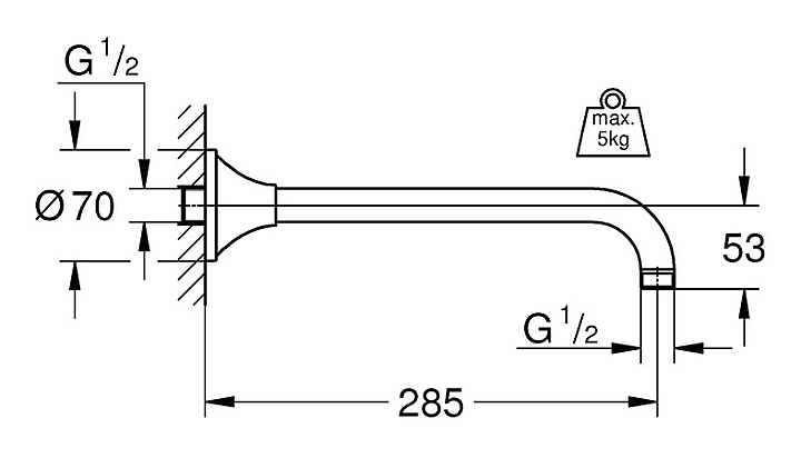 Кронштейн для верхнего душа Grohe Rainshower Grandera 27986000 предназначен для установки в ванных комнатах. Модель монтируется на стену. Изделие выполнено из металла с хромированным покрытием. Характеристики: