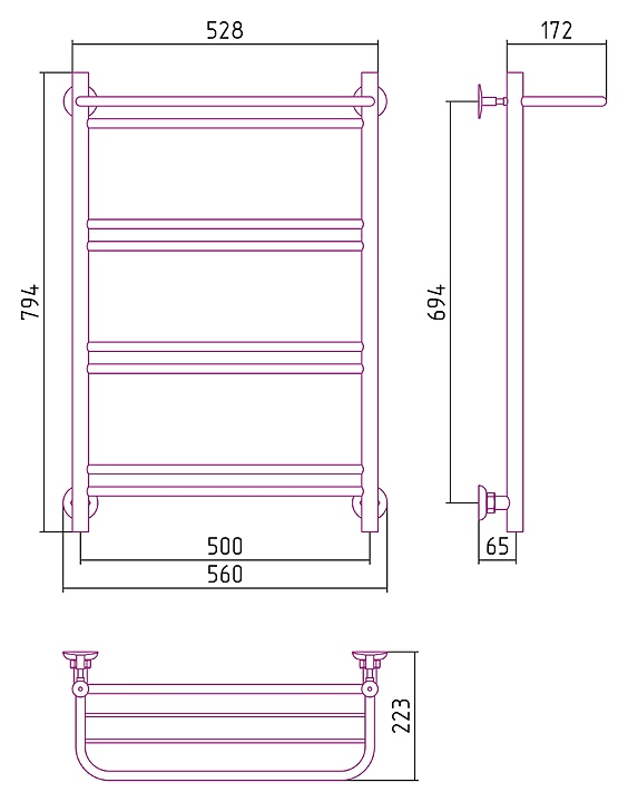 Полотенцесушитель водяной с полкой Стилье Версия-Н1 80х50 см без покрытия