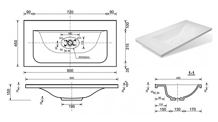 Раковина ЭСТЕТ Бали 90 ФР-00001472 выполнена в современном стиле. Модель оснащена широкими задней и боковыми поверхностями, на которых можно размещать необходимые аксессуары для ежедневного использования. Встраиваемая конструкция позволяет экономить место в ванной комнате для хранения туалетных принадлежностей. Изделие выполнено из литого мрамора, состоящего из мраморной крошки в сочетании с полиэфирным смолами, обладающего повышенной прочностью и устойчивостью к негативным внешним факторам. В комплект поставки входит слив-перелив. Смеситель в комплект поставки не входит и приобретается отдельно. Особенности: