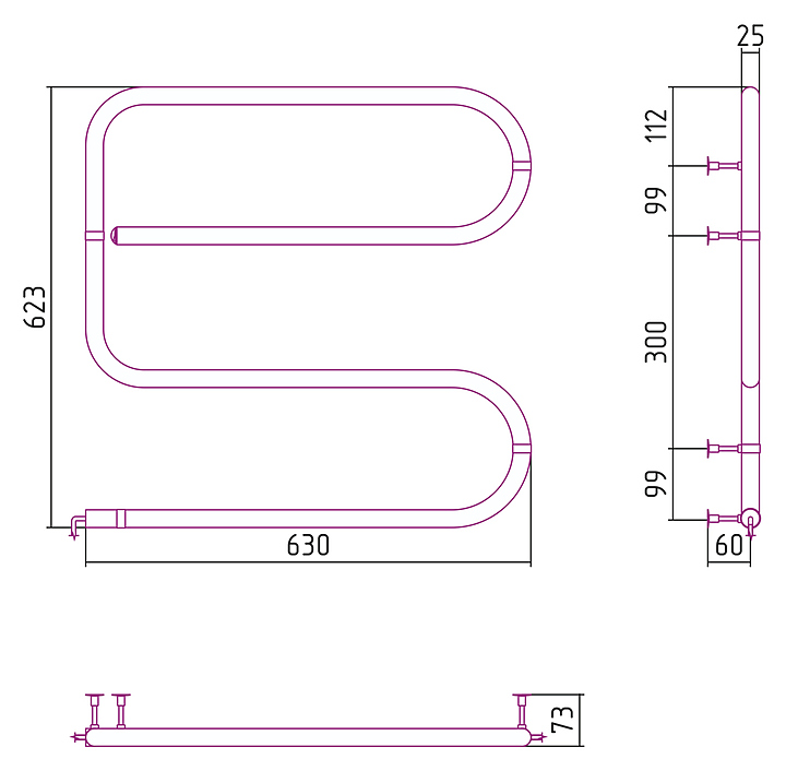 Полотенцесушитель электрический Стилье №06 GS-образный 60х65 см без покрытия