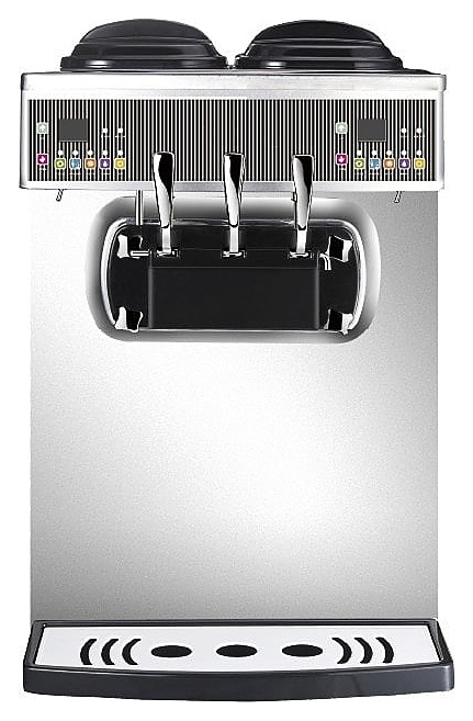 Настольный фризер Pasmo S230F используется на предприятиях общественного питания и торговли для приготовления мягкого мороженого, замороженного йогурта, муссов или сорбетов 2 различных вкусов, а также их смешанного варианта. Модель оснащена воздушным насосом, 2 цилиндрами с шнеками, 2 бункерами с крышками, подставкой для готового продукта с каплесборником, устойчивыми опорами, диспенсером с 3 рукоятками, панелью управления с символьным меню и 2 информативными дисплеями. Корпус выполнен из нержавеющей стали с матовой поверхностью, емкости, шнеки и аэраторные трубки – из высококачественной пищевой нержавеющей стали SS304, рукоятки и фиксирующие винты диспенсера – из хромированного металла. Особенности: