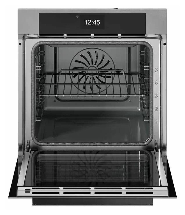 Электрический духовой шкаф Bertazzoni F6011MODETZ предназначен для приготовления большого ассортимента блюд в домашних условиях. Модель оснащена вместительной камерой с кольцевым нагревательным элементом и вентилятором в задней стенке, грилем, 2 съемными стойками с 5 уровнями направляющих для противней, герметичной дверью с прямоугольным смотровым окном, горизонтальной рукояткой и сенсорным жидкокристаллическим TFT дисплеем. Корпус выполнен из металла с антикоррозийным порошковым покрытием с содержанием цинка, направляющие – из металла с хромированным покрытием, облицовка камеры – серая пиролитическая эмаль, покрытие рукоятки и верхней панели – стекло. В комплект поставки входят 2 противня с эмалированным покрытием: стандартный и глубокий, подставка, 2 усиленные решетки для гриля: плоская и вогнутая с возможностью установки в глубокий противень. Особенности: