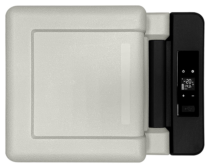 Переносной автохолодильник MEYVEL AF-B12 предназначен для охлаждения, глубокой заморозки, хранения и транспортировки продуктов питания и напитков в легковых и грузовых автомобилях, автодомах, специальной технике, лодках, катерах, яхтах, других видах транспорта и в быту. Модель оснащена откидной крышкой с интегрированной рукояткой, сенсорной панелью управления с жидкокристаллическим дисплеем с высокими яркостью и разрешением. Внешняя облицовка корпуса выполнена из прочного пластика с текстурной нескользящей поверхностью, теплоизоляция – пенополиуретан высокой плотности. В комплект поставки входят кабель питания, инструкция по эксплуатации и гарантийный талон. Особенности: