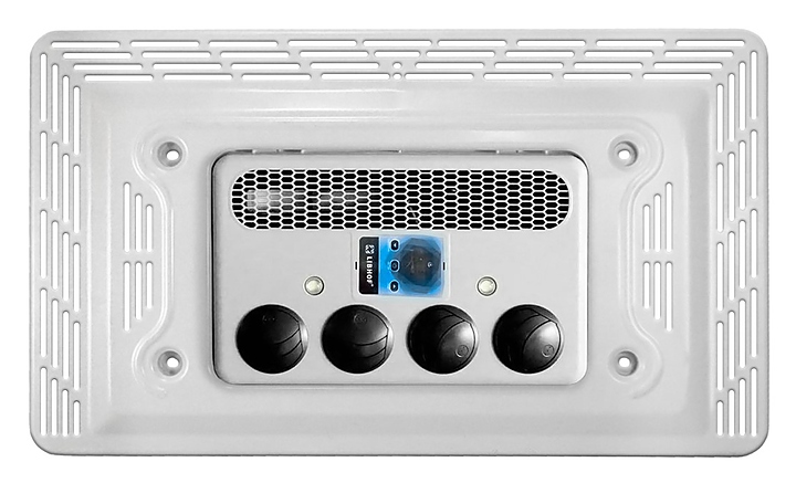 Автономный кондиционер Libhof ТМ-324 предназначен для создания комфортных климатических условий в грузовом транспорте, спецтехнике, автобусах, трамваях, катерах и яхтах, а также в автодомах и кемперах. Модель состоит из настенного наружного блока, внутреннего блока-испарителя, панели управления, предназначенной для полного контроля за параметрами кондиционера и переключения режимов и пульта дистанционного управления. Особенности: