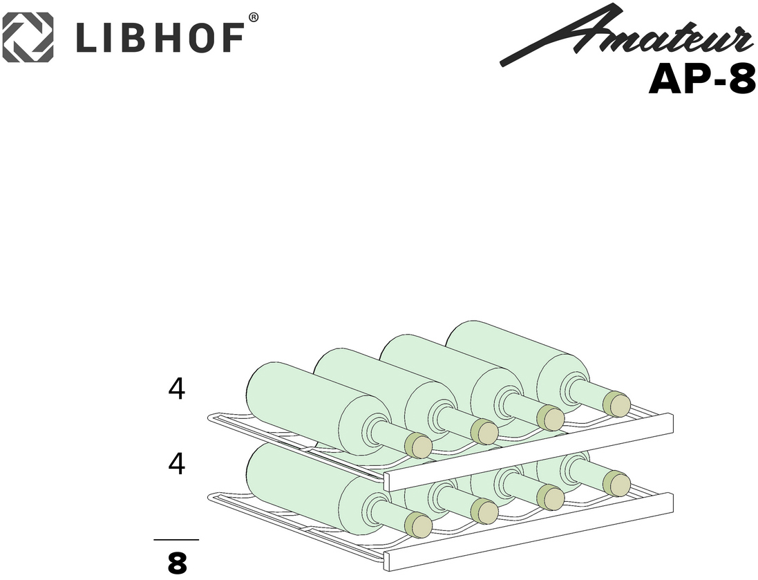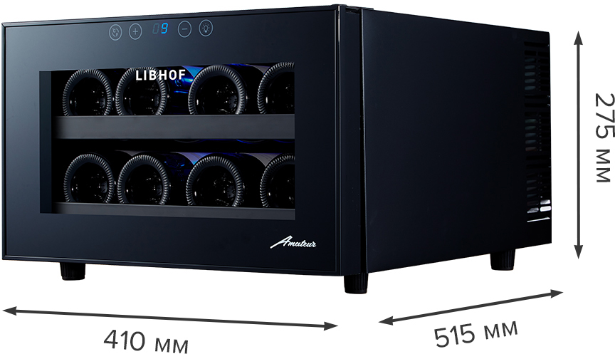 Встраиваемый винный шкаф Libhof AP-8 серии Amateur предназначен для хранения при оптимальных условиях бутилированного вина различных сортов в барах, ресторанах, специализированных магазинах, подсобных складских помещениях, а также в домашних условиях. Модель оснащена 2 съемными полками, распашной дверью с внутренними петлями, интегрированной ручкой и дымчатым стеклом с защитным напылением от ультрафиолетовых лучей. Корпус выполнен из металла, полки - из стали. Особенности: