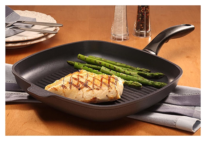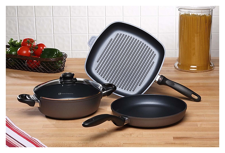 Сковорода-гриль Swiss Diamond XD 63281I предназначена для приготовления широкого спектра блюд на любых типах варочных поверхностей, включая индукционные, на предприятиях общественного питания и торговли, а также в домашних условиях. Модель оснащена дном с канавками для стекания масла, сбалансированной фиксированной рукояткой с отверстием для подвешивания и небольшой вспомогательной ручкой. Корпус прямоугольной формы выполнен из сплава алюминия и кремния методом литья под высоким давлением с последующей пескоструйной шлифовкой и плазменным напылением для усиления адгезии внешнего покрытия, рукоятка – из термостойкого бакелита. Особенности: