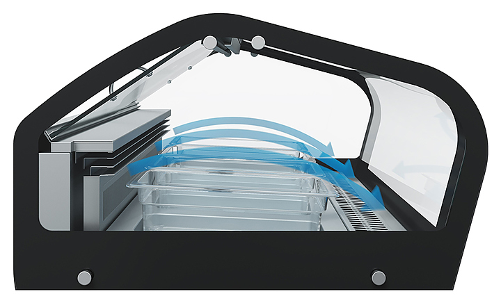 Витрина для мороженого Carboma I60 VL 0,8-1 JOY используется на предприятиях общественного питания и торговли для охлаждения, хранения и демонстрации мягкого и других видов мороженого. Модель оснащена электронным блоком управления Carel, изогнутым фронтальным и 2 боковыми стеклопакетами высокой степени прозрачности. Каркас выполнен из стали с антикоррозийным покрытием, фронтальная панель – из стали с покрытием зеленого цвета (RAL6018), экспозиционные поддоны – из нержавеющей стали, термоизоляция – из пенополиуретана, гастроемкости – из прозрачного поликарбоната. В комплект поставки входят 4 гастроемкости GN1/3. Особенности: