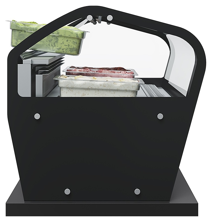 Витрина для мороженого Carboma I60 VL 1,2-1 JOY используется на предприятиях общественного питания и торговли для охлаждения, хранения и демонстрации мягкого и других видов мороженого. Модель оснащена электронным блоком управления Carel, изогнутым фронтальным и 2 боковыми стеклопакетами высокой степени прозрачности. Каркас выполнен из стали с антикоррозийным покрытием, фронтальная панель и экспозиционные поддоны – из нержавеющей стали, термоизоляция – из пенополиуретана, гастроемкости – из прозрачного поликарбоната. В комплект поставки входят 6 гастроемкостей GN1/3. Особенности: