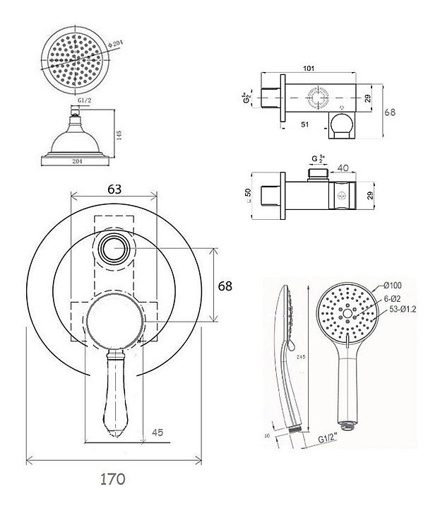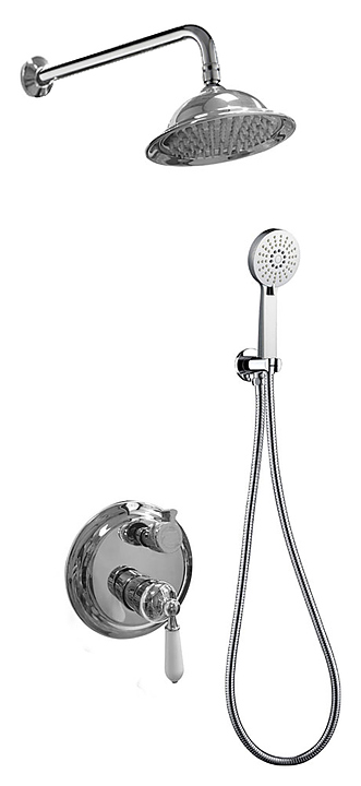 Душевой комплект Bronze de Lux Perse NT9055-OR-2 используется в ванных комнатах. Модель оснащена круглыми верхним душем и ручной лейкой. Комплект оборудован керамическим картриджем, обеспечивающим плавный ход рычага смесителя, контроль и точность при выборе напора и температуры воды. Изделие выполнено из высококачественной латуни, которая отличается долговечностью и устойчивостью к перепадам температур. Дополнительные характеристики: