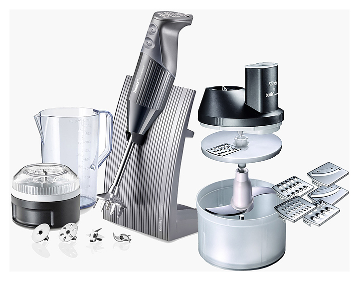 Блендер Bamix SuperBox M200 предназначен для взбивания жидкого теста, кремов и коктейлей, измельчения фруктов, овощей, орехов и трав и приготовления супов-пюре в частных домах и квартирах. Модель оснащена подставкой Swissline с отделами для хранения блендера, насадок и процессора. Корпус выполнен из нейлона, погружная часть - из оцинкованной латуни, кувшин - из ударопрочного и термостойкого тритана, насадки - из нержавеющей стали 18/10. Комплектация: