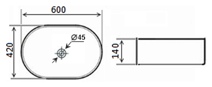 Раковина накладная TIMO KULO ТК-405 MB 60х42х14 см, керамика