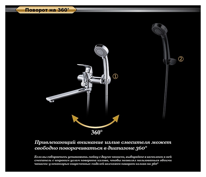 Смеситель D&K Rhein Feuerbach DA1283301 предназначен для использования в ванных комнатах для подачи горячей и холодной воды. Модель оснащена длинным поворотным изливом, трехрежимной ручной лейкой и душевым шлангом, керамическим картриджем, обеспечивающим плавный ход рычага смесителя, контроль и точность при выборе напора и температуры воды, а также аэратором для создания мягкой ровной струи без разбрызгивания. Изделие выполнено из высококачественной латуни, отличающейся прочностью, долговечностью и устойчивостью к перепадам температур. В комплект поставки входят cмеситель, излив, эксцентрики, декоративная шайба (отражатель), шланг душевой, лейка душевая и держатель душевой лейки. Особенности: