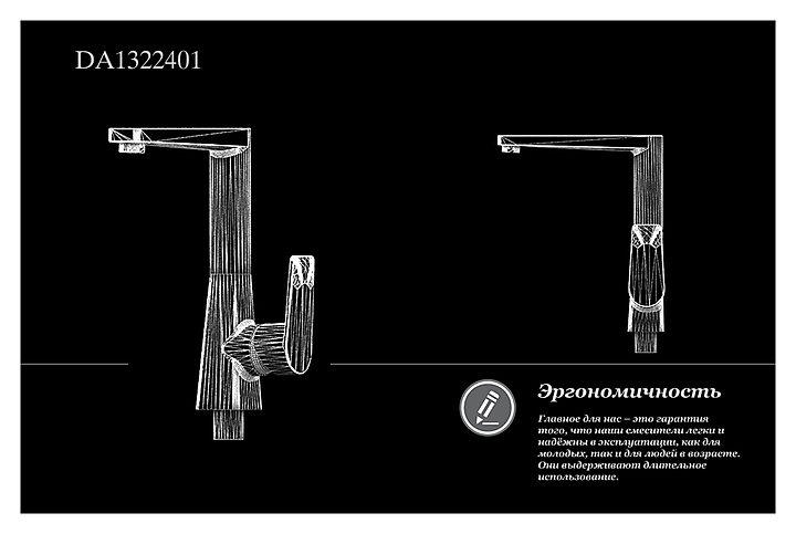 Смеситель D&K Rhein Lessing DA1322401 предназначен для использования в кухонных помещениях для подачи горячей и холодной воды. Модель оснащена высоким поворотным изливом, керамическим картриджем, обеспечивающим плавный ход рычага смесителя, контроль и точность при выборе напора и температуры воды, а также аэратором для создания мягкой ровной струи без разбрызгивания. Изделие выполнено из высококачественной латуни, отличающейся прочностью, долговечностью и устойчивостью к перепадам температур. В комплект поставки входят cмеситель, гибкая подводка и крепежные гайки. Особенности:
