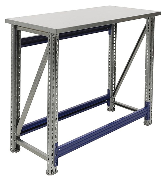 Металлический верстак ПРОМЕТ Master (№101) MT100.MF1/MF1.000 предназначен для оснащения рабочих мест на производственных участках, станциях технического обслуживания, участках сборки и комплектации, в загородных домах и технических помещениях. Опоры и накладка на столешницу изготовлены из оцинкованной стали. Комплектация: