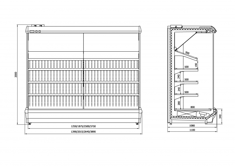 Горка холодильная ENTECO MASTER НЕМИГА П1 250 ВВ (выносной агрегат) пристенная