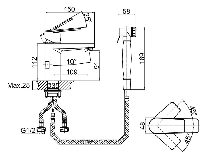 Смеситель для раковины D&K Rhein Lessing DA1322601 предназначен для использования в ванных и туалетных комнатах для подачи горячей и холодной воды. Модель оснащена изливом и гигиенической лейкой, керамическим картриджем, обеспечивающим плавный ход рычага смесителя, контроль и точность при выборе напора и температуры воды, а также аэратором для создания мягкой ровной струи без разбрызгивания. Изделие выполнено из высококачественной латуни, отличающейся прочностью, долговечностью и устойчивостью к перепадам температур. В комплект поставки входят cмеситель, гибкая подводка, крепежная гайка, душевой шланг, гигиеническая лейка и держатель для лейки. Особенности: