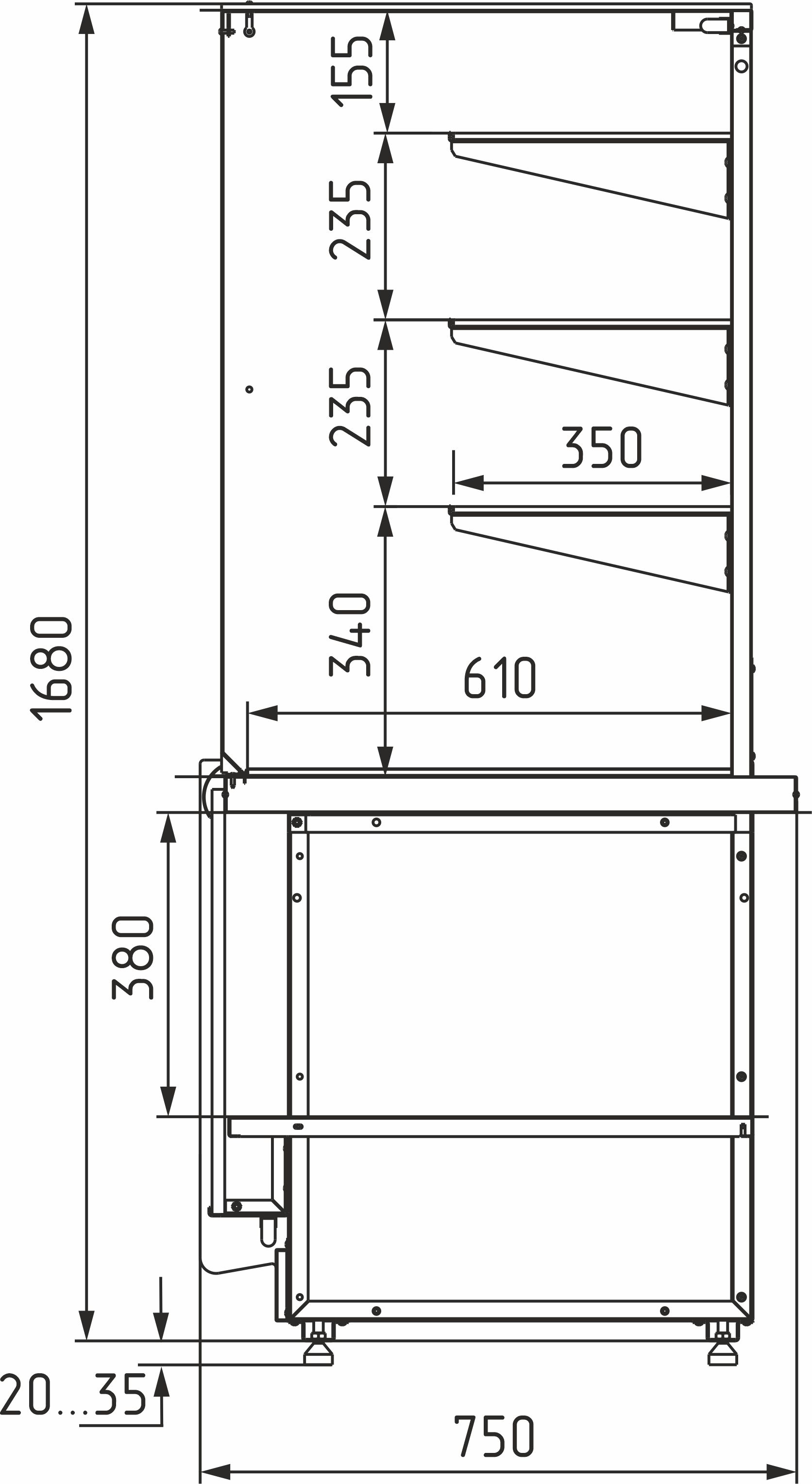 Кондитерская витрина Carboma KC80 N 1,2-11 BORNEO 2 используется на предприятиях общественного питания и торговли для демонстрации и кратковременного хранения продукции, не требующей определенного температурного режима. Зона выкладки выполнена из шлифованной нержавеющей стали, внешние панели – из ламинированной древесноволокнистой плиты средней плотности (МДФ), нижняя облицовка и профиль под стекло – из стали с покрытием черной краской (RAL 9005), верхние стойки – из легкого полиметилметакрилата (ПММА) высокой степени прозрачности, каркасные стойки – из профиля нержавеющей стали, полки – из стекла, термоизоляция – из пенополиуретана. Боковины не входят в комлект поставки и приобретаются отдельно. Особенности: