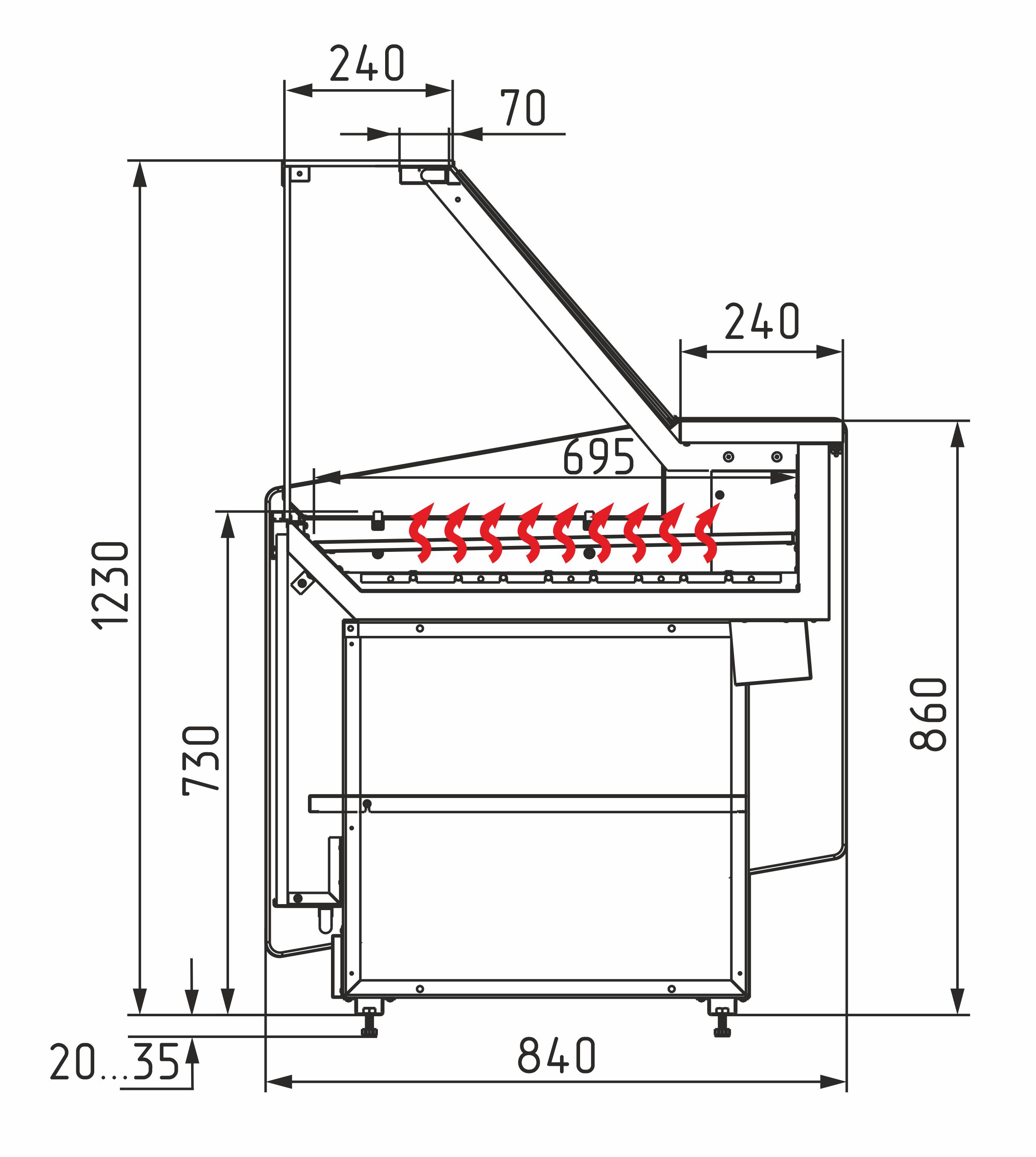 Тепловая кондитерская витрина Carboma КС80 SH 1,0-1 BORNEO 2 используется на предприятиях общественного питания и торговли для поддержания в горячем состоянии, кратковременного хранения, демонстрации и продажи различных закусок и блюд, пиццы и выпечки. Зона выкладки и столешница выполнены из шлифованной нержавеющей стали, внешние панели – из ламинированной древесноволокнистой плиты средней плотности (МДФ), нижняя облицовка и профиль под стекло – из стали с покрытием черной краской (RAL 9005), верхние стойки – из легкого полиметилметакрилата (ПММА) высокой степени прозрачности, термоизоляция – из пенополиуретана. Боковины не входят в комлект поставки и приобретаются отдельно. Особенности: