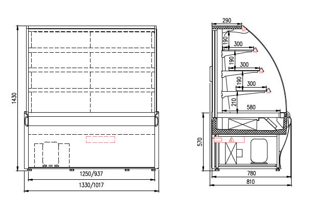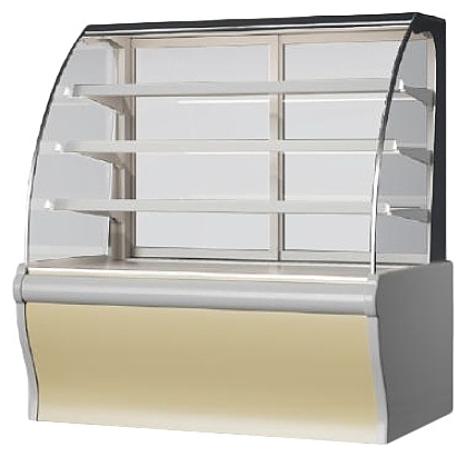 Кондитерская витрина ENTECO MACTER ВИЛИЯ PREMIUM 125 ВВ(К) предназначена для эффектной демонстрации и кратковременного предпродажного хранения пирожных, тортов и других кондитерских изделий на предприятиях общественного питания и торговли. Модель оснащена 3 каскадными ярусами навесных полок, 2 выдвижными поддонами, боковыми стеклопакетами, задними раздвижными стеклопакетами и изогнутым фронтальным стеклом. Корпус выполнен из листовой оцинкованной стали. Особенности: