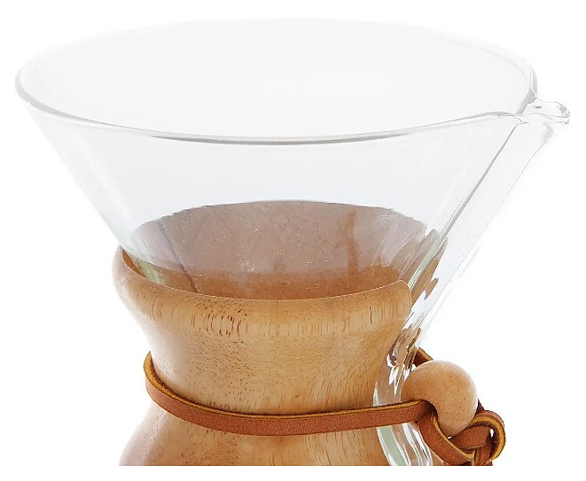 Кофеварка Chemex CM-6A предназначена для приготовления фильтр-кофе методом кемекс в отелях, офисах, частных домах и квартирах в домашних условиях. Корпус выполнен из жаропрочного стекла, держатель – из древесины с декоративными элементами из кожи и дерева. Дополнительные характеристики: