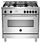 Варочный центр La Germania Americana AMN965GXT предназначен для приготовления и разогрева большого ассортимента блюд в наплитной посуде, выпечки пирогов, пиццы и запеканок в частных домах и квартирах. Модель оснащена цельной рабочей поверхностью с 5 конфорками, поворотными переключателями мощности с покрытием Soft Touch, отсеком для хранения с откидной крышкой и регулируемыми по высоте опорами. Корпус, рама двери духовки, варочная поверхность и борт выполнены из нержавеющей стали, конфорки - из алюминия, решетки - из чугуна, дверь - из 2-х слойного стекла. В комплект поставки входят 1 противень, 2 решетки и 1 решетка для гриля. Особенности:
