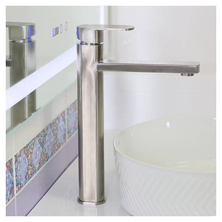 Смеситель MELANA 610302 Stello выполнен в современнм стиле и предназначен для подачи горячей и холодной воды в ванных помещениях. Модель оснащена высоким фиксированным изливом, керамическим картриджем, обеспечивающим плавный ход рычага смесителя, контроль и точность при выборе напора и температуры воды, а также аэратором для создания мягкой ровной струи без разбрызгивания. Однорычажный тип управления позволяет очень быстро и плавно регулировать подачу воды одной рукой. Изделие выполнено из нержавеющей стали, отличающейся повышенной устойчивостью к коррозии и долговечностью. Особенности: