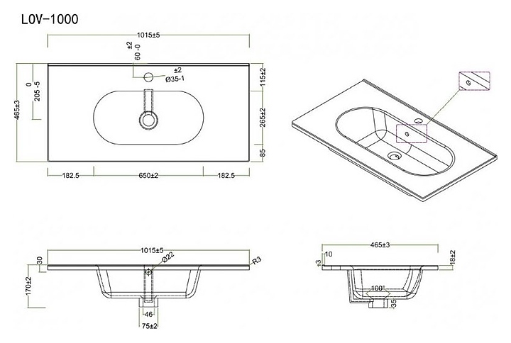 Раковина BelBagno LOV-1000-LVB