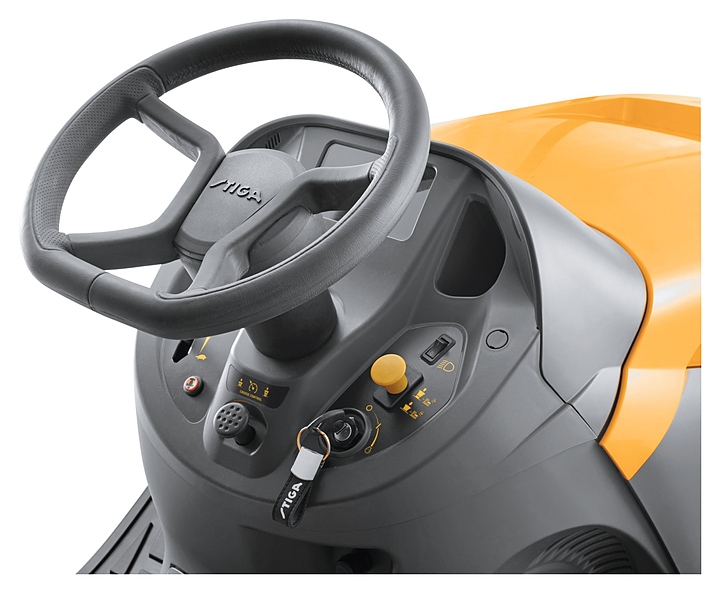 Садовый трактор Stiga Estate 7102 HWSY предназначен для кошения травы, а также работы с прицепными насадками различного назначения на частных приусадебных участках и придомовых территориях. Модель оcнащена 2-цилиндровым двигателем внутреннего сгорания Honda GXV 630, задним приводом, режущей декой с 2 ножами и 4 защитными роликами, съемным травосборником, подстаканником, рулевым колесом Stiga премиум, передним бампером, 4 пневматическими колесами и приборной панелью с широкоформатным цветным дисплеем. Корпус режущей деки выполнен из высококачественной оцинкованной стали, передний мост – из чугуна, травосборник – из износостойкой ткани с пластиковым верхом, рулевое колесо с мягким покрытием. В комплект поставки входят зарядное устройство, сцепное устройство и набор для мульчирования с механизмом Multiclip. Особенности: