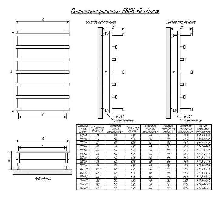 Полотенцесушитель водяной Двин 4656759174224 Q Plaza 80/50 К3, состаренная бронза