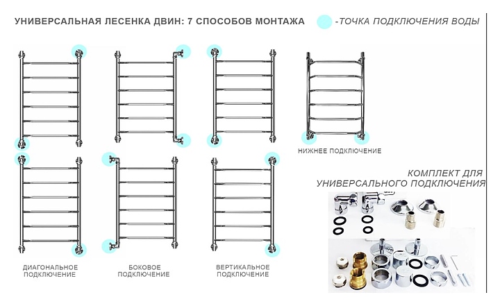Полотенцесушитель водяной Двин 4627090956459 W 80/50 1"-1/2" Универсальный К3, состаренная бронза