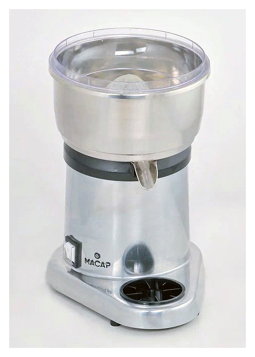 Соковыжималка Macap P200 предназначена для приготовления сока из лимонов, апельсинов, грейпфрутов и других цитрусовых на предприятиях общественного питания и торговли. Модель оснащена фильтром и 2 сменными прижимными конусами: для лимонов и для апельсинов и грейпфрутов. Корпус выполнен из литого алюминия, конусы - из пластика. Дополнительные характеристики: