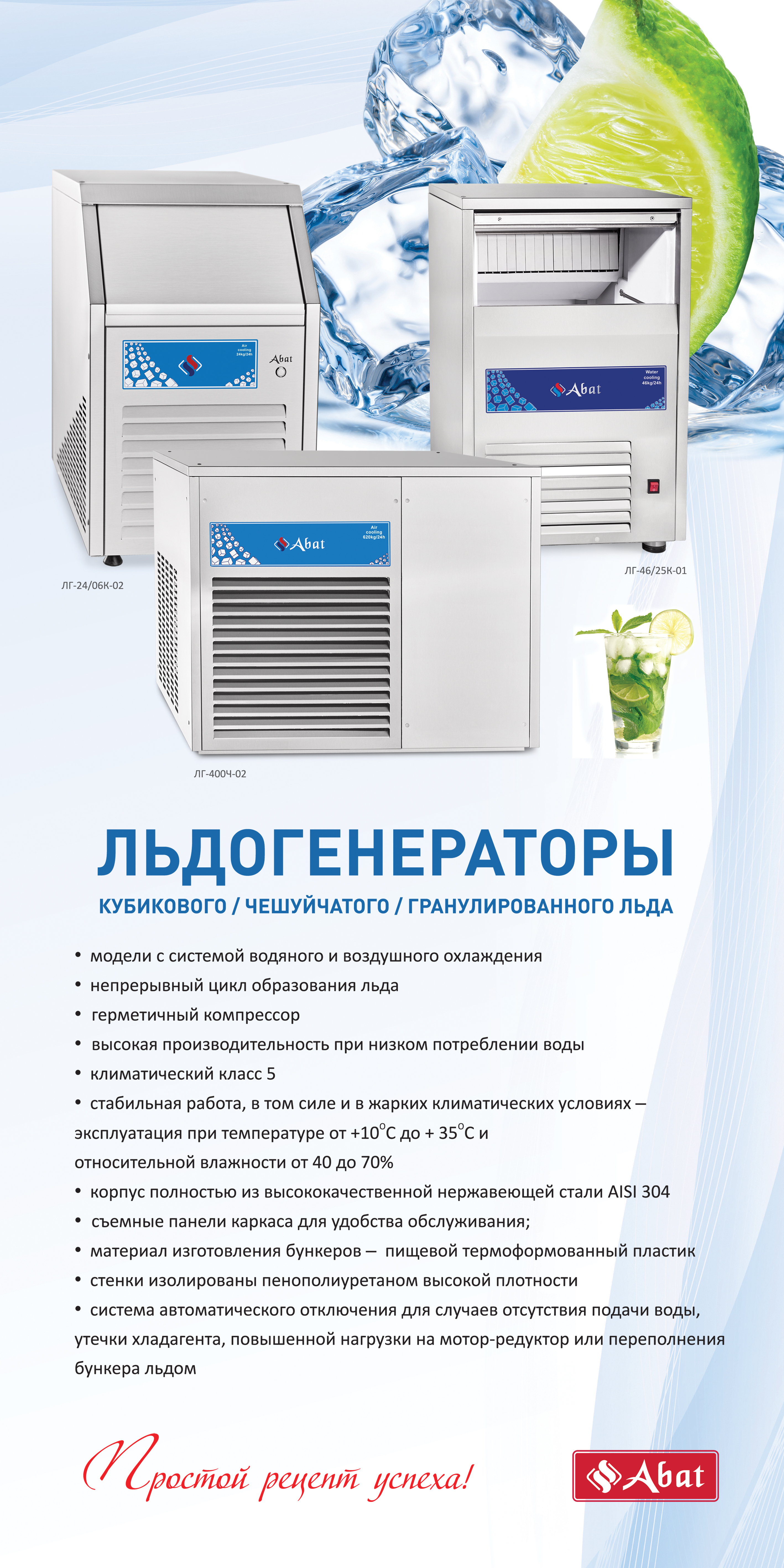 Льдогенератор Abat ЛГ-80/40К-02 предназначен для производства кубикового льда для быстрого охлаждения напитков на предприятиях общественного питания и торговли. Модель оснащена компрессорным агрегатом и отодвигающейся вовнутрь дверцей. Каркас и облицовка за исключением задней стенки выполнены из высококачественной аустенитной нержавеющей стали марки AISI 304, контейнер для льда – из пищевого термоформованного пластика, термоизоляция – из пенополиуретана высокой плотности. Рекомендуется дополнительно приобрести водоумягчитель и фильтр-систему для очистки и смягчения воды. Подробннее о необходимости водоподготовки читайте здесь. Особенности: