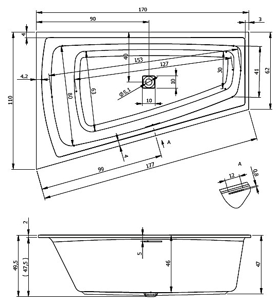 Ванна RIHO STILL SMART R FALL 170x110 см (заполнение через перелив), акрил