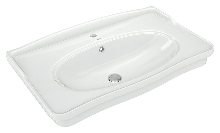 Раковина KIROVIT Модерн 85 дополнит интерьер любой ванной комнаты. Модель оснащена широкими задней и боковыми поверхностями, на которых можно размещать необходимые аксессуары для ежедневного использования, а глубокая удобная чаша препятствует разбрызгиванию воды. Изделие выполнено из керамики, которая обладает повышенной прочностью и устойчивостью к негативным внешним факторам, а также долгое время сохраняет идеальную белизну и не впитывает запахи и грязь. В комплект поставки входит хромированное кольцо для переливного отверстия. Раковина приобретается только в комплекте с тумбой OPADIRIS Кантара 85 00-00004012. Особенности: