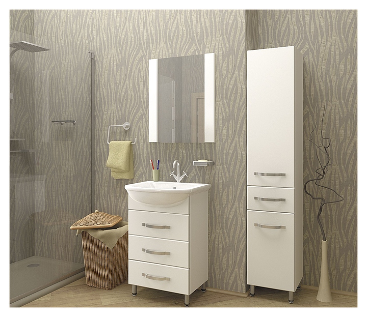 Тумба под раковину Mixline Диамант-55 идеально впишется в интерьер любой ванной комнаты. Напольная конструкция обеспечивает легкий монтаж и не требует специального ремонта в помещении. Модель оснащена 3 ящиками полного выдвижения с шариковыми направляющими. Корпус выполнен из ЛДСП, фасад - из МДФ с пленкой ПВХ. Тумба может использоваться вместе с раковиной Mixline Элеганс-55. Комплектация: