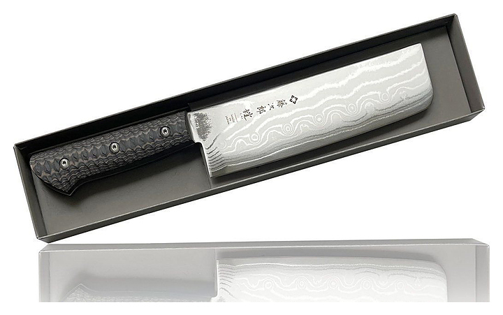Нож накири Tojiro F-1350 серии GAI предназначен для шинковки всех видов корнеплодов и фруктов в ресторанах, кафе. Лезвие выполнено из стали VG-10 в обкладках из дамаска, рукоятка - из микарты. Особенности: